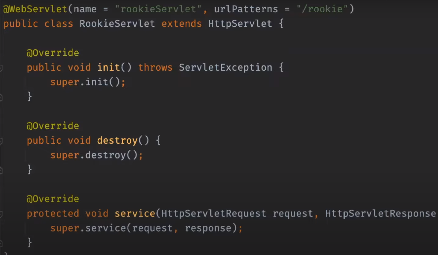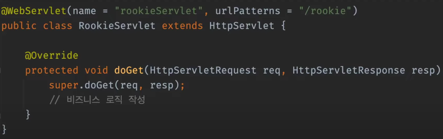 - 서블릿 컨테이너가 서블릿에 대해 호출할 메서드를 정의한 것이 Servlet 인터페이스이다.