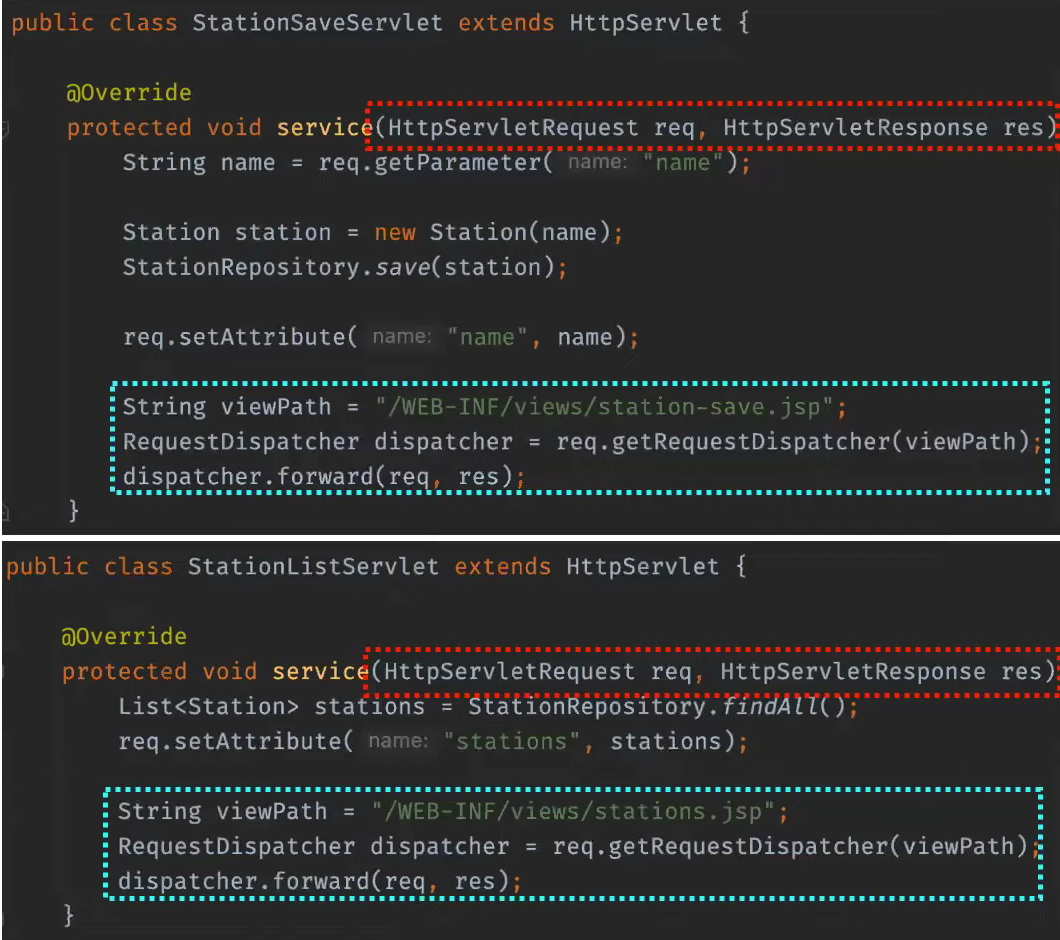 이렇게 중복되는 부분이 많게되면 Servlet에 종속적인 구조를 가지게되고,