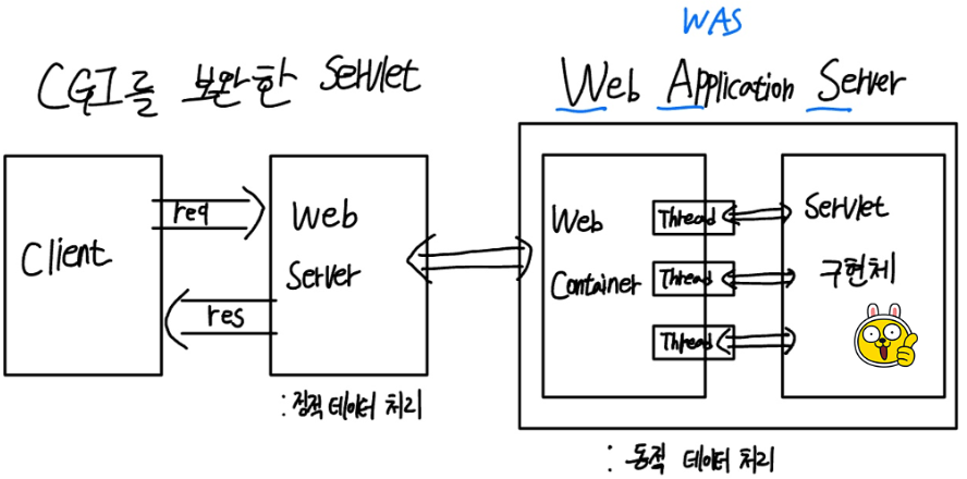 ▶ CGI의 문제점들을 보완하여 Servlet 탄생!