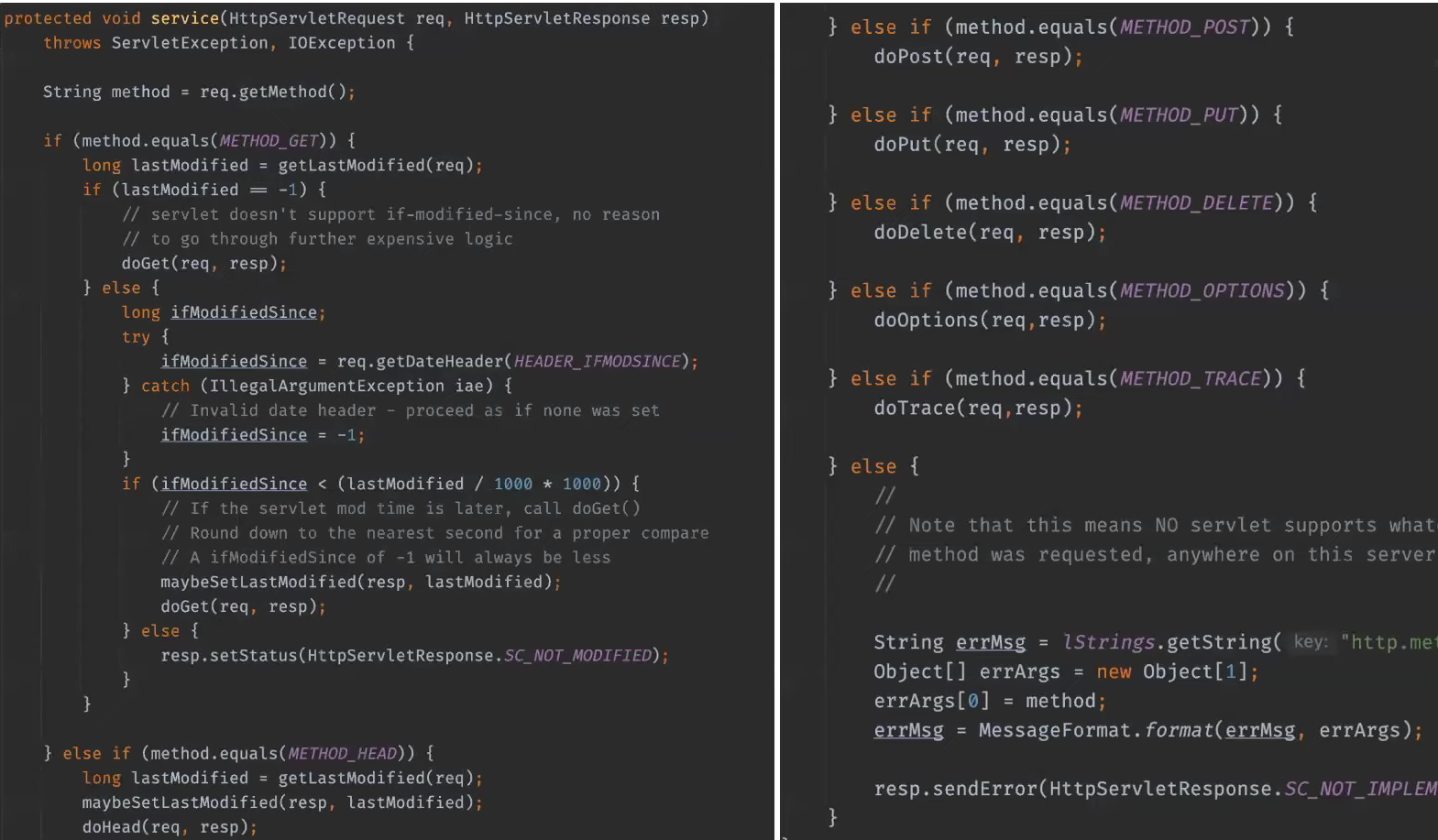 요청을 처리하기 위해 호출되는 메서드인 service()를 보면