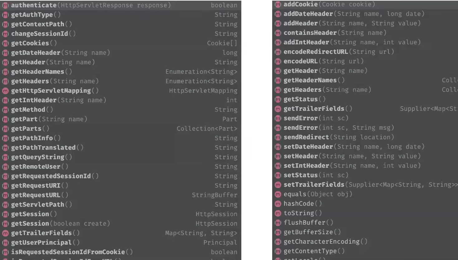 - 헤더정보, 파라미터, 쿠키, URI, URL 등의 정보를 읽어 들이는 메소드 포함