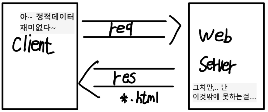 - 초기 웹 서비스는 정적데이터만 전달 할 수 있었다.